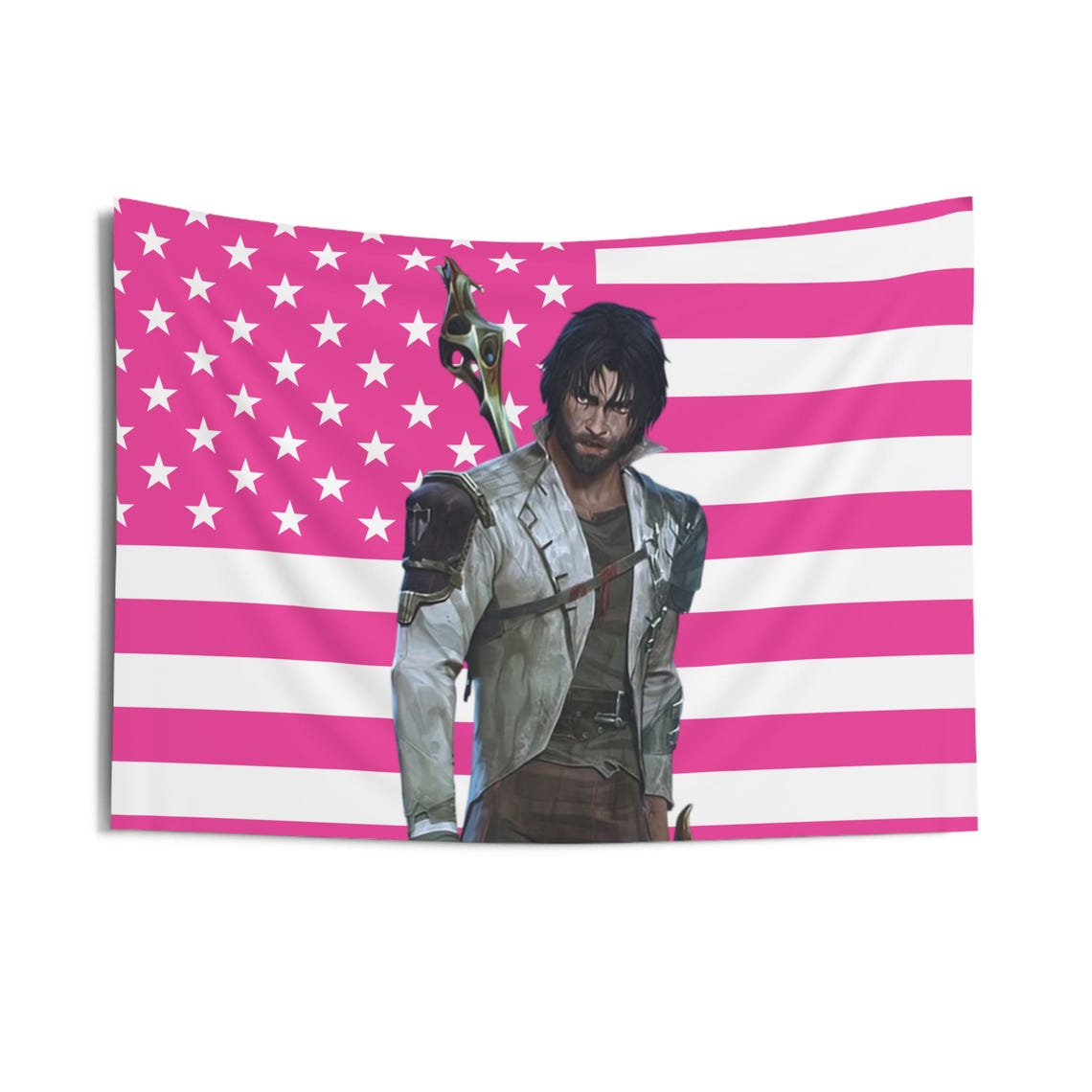 Arcane Bearded Jayce Pink US Flag Tapestries, Jayce Talis (Arcane) Indoor Wall Tapestries
