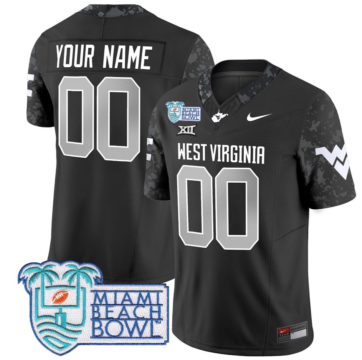 Custom West Virginia Mountaineers Jersey 2025 Miami Beach Bowl Patch Coal