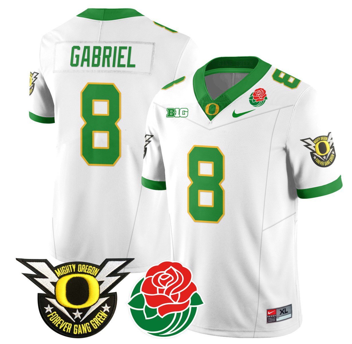 Dillon Gabriel Jersey #8 Oregon Ducks 2024 Mighty Rose Bowl Patch N2 White
