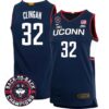Donovan Clingan Jersey #32 UConn Huskies Basketball 2024 Back To Back Champions Patch White Gold