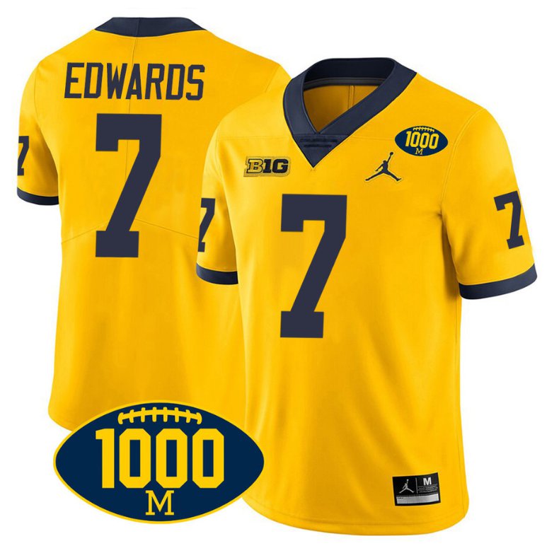 Donovan Edwards Jersey #7 Michigan Wolverines 1000 Wins Patch College Football Yellow