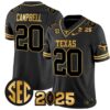 Earl Campbell Jersey #20 Texas Longhorns 2025 CFP Final Patch Black Alternate