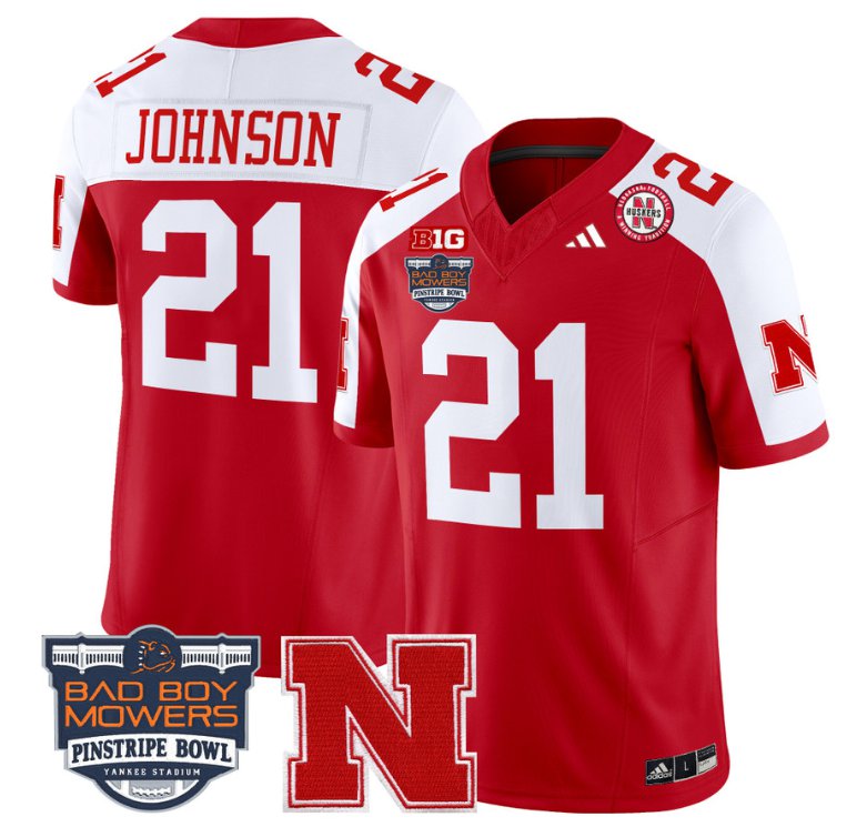 Emmett Johnson Jersey #21 Nebraska Cornhuskers 2025 Pinstripe Bowl Scarlet Alternate