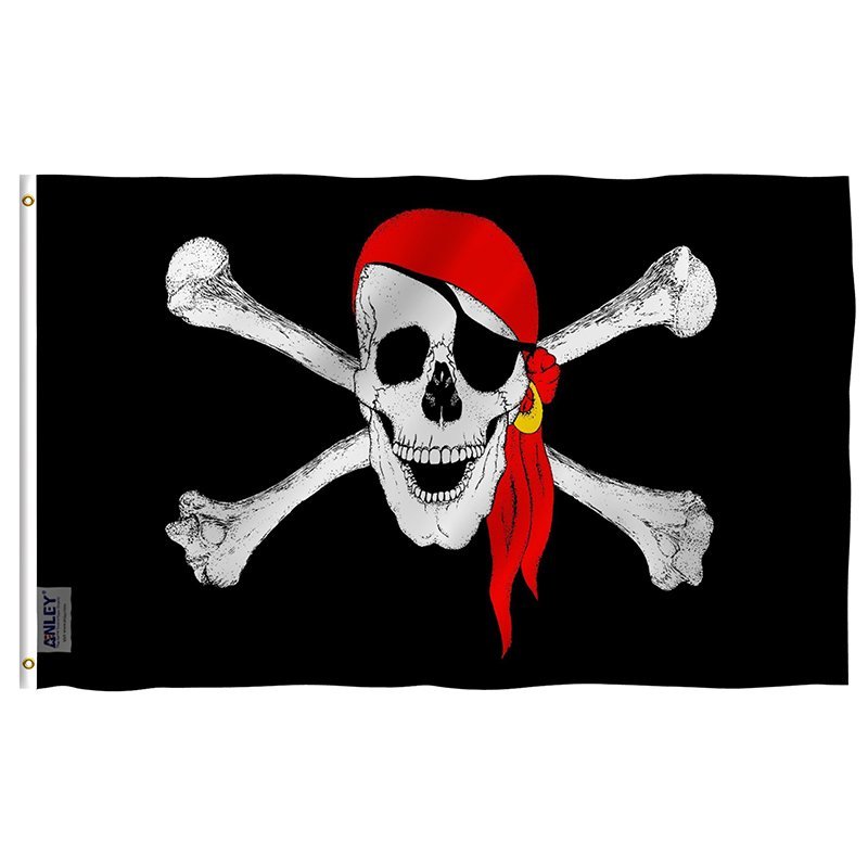 Fly Breeze Jolly Roger Flag With Red Bandana With Brass Grommets 3x5ft Banner Usa
