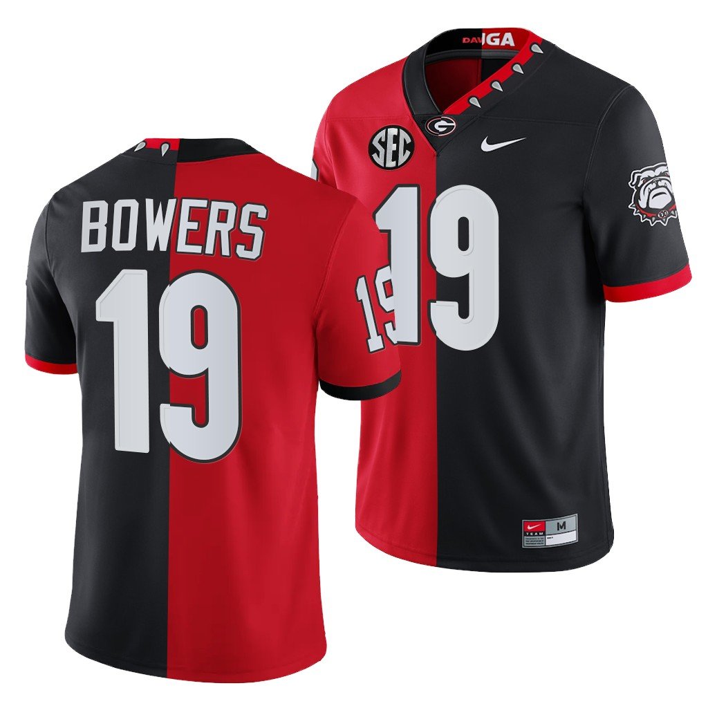 Georgia Bulldogs #19 Brock Bowers Red Black 2021-22 Split Edition Mascot 100th Anniversary Jersey