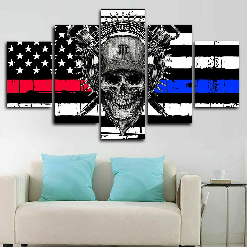 Harley Skull Flag Blue Five Piece No Frame Canvas Multi Panel Home Decor Wall Art