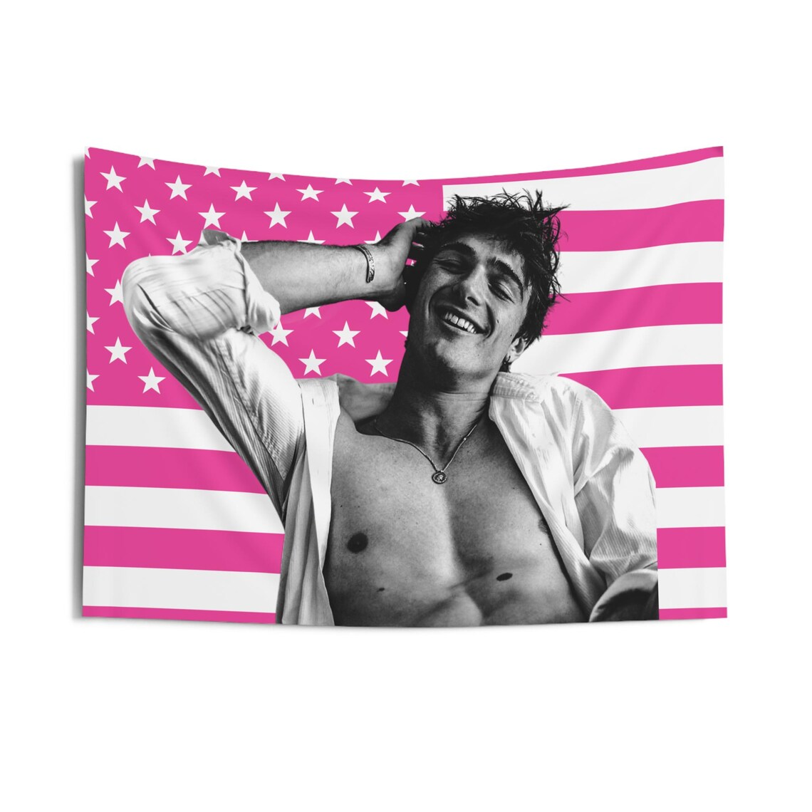 Jacob Elordi Shirtless Tapestries, Jacob Elordi Pink Flag, Jacob Elordi Indoor Wall Tapestries