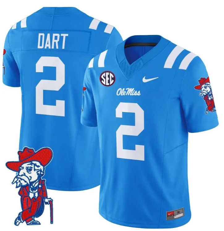 Jaxson Dart football jersey #2 Ole Miss Rebels Vapor Limited College Football Stitched Powder Blue