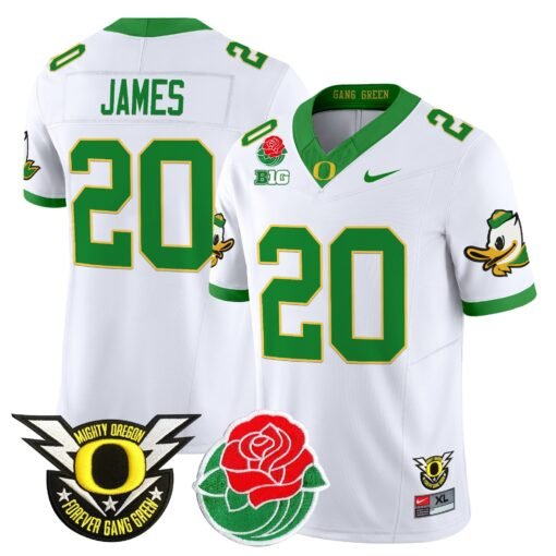 Jordan James Jersey #20 Oregon Ducks 2025 Rose Bowl Game Patch Vapor White