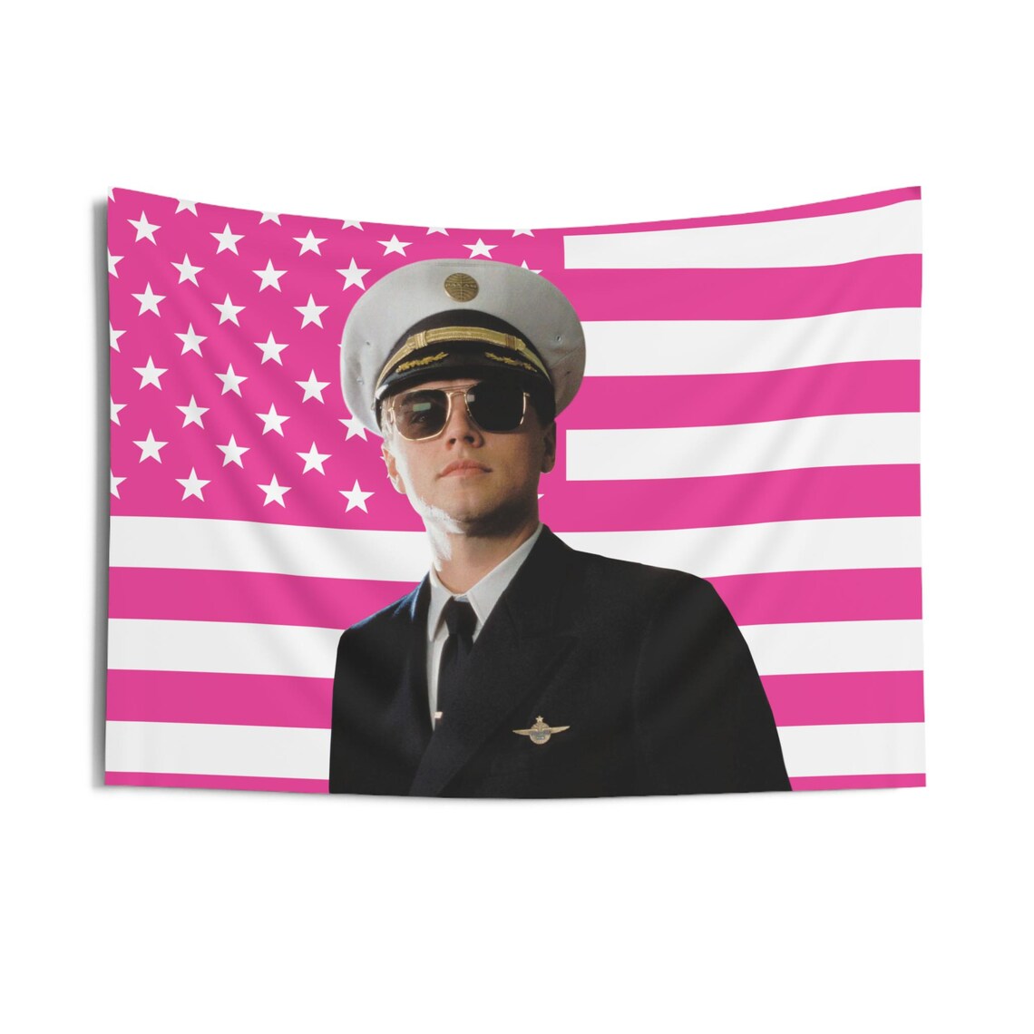 Leonardo DiCaprio as Frank Abagnale Jr. Tapestries, Leonardo DiCaprio Pink Flag, Leonardo DiCaprio Indoor Wall Tapestries
