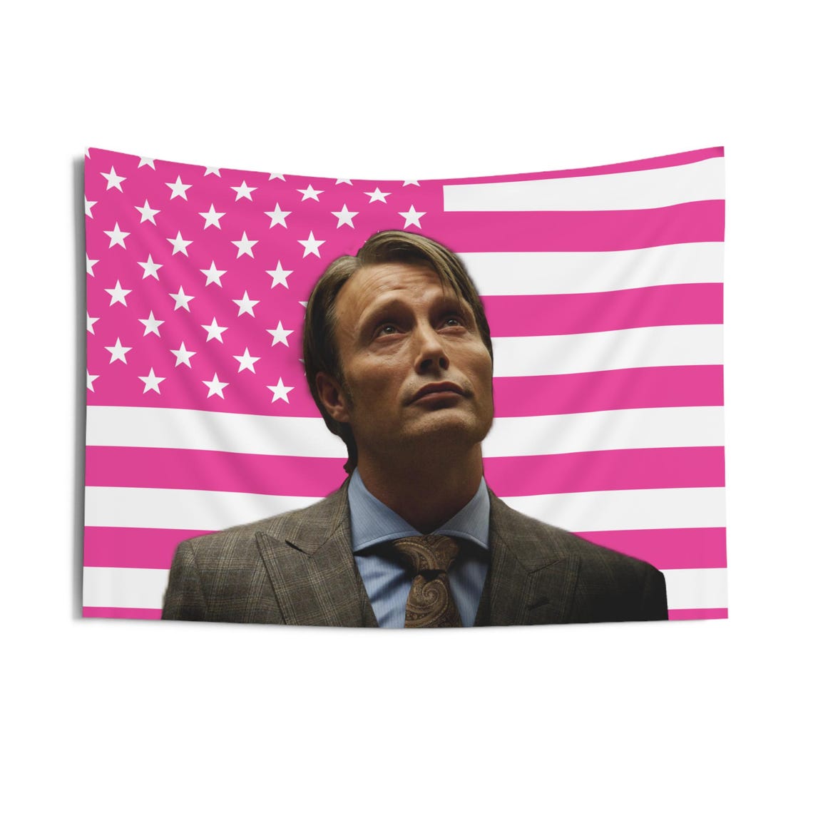 Mads Mikkelsen Tapestries, Mads Mikkelsen Pink Flag, Mads Mikkelsen Indoor Wall Tapestries