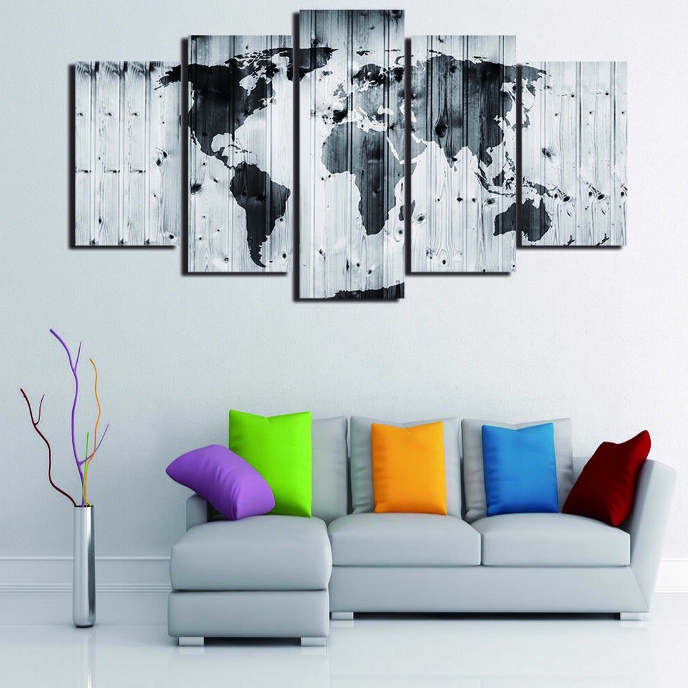 No Frame World Map Rustic Wood Lk Five Piece Canvas Multi Panel Home Decor Art 5