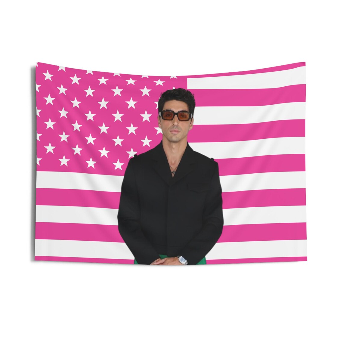 Taylor Zakhar Perez green pants and black jacket Tapestries, Taylor Zakhar Perez Pink Flag, Taylor Zakhar Perez Indoor Wall Tapestries