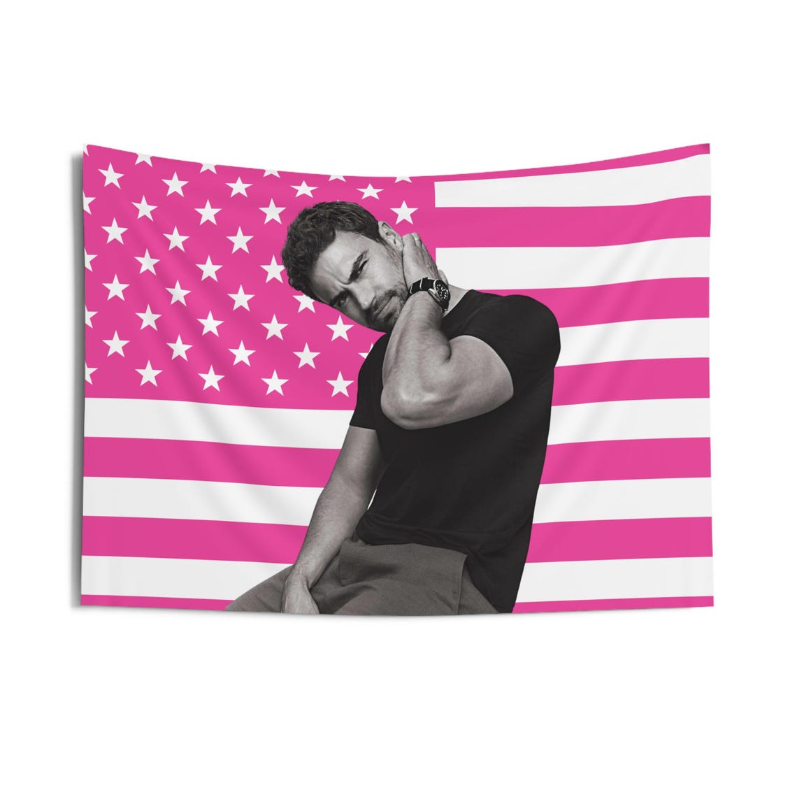 Theo James Tapestries, Theo James Black And White Pink Flag, Theo James Indoor Wall Tapestries